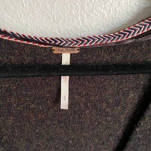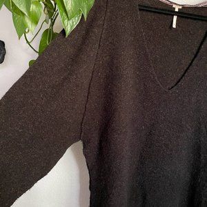 Free People Irresistible V Neck Wool Blend Fringe Hem Sweater
