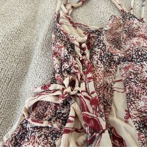 Free People Isabella Dress Side Lace Up Tie boho mixed print cut sew Romper Pink
