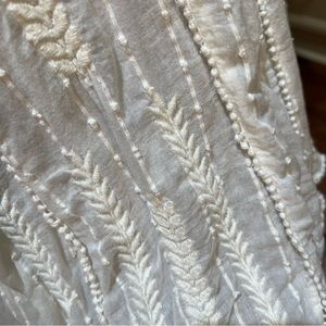 Free People Isabella Mini Ivory Long Sleeve Boho Dress. Sz 0. Good Used Condition. 100% Cotton. Approx 34” chest, 24” waist (elastic/great stretch), 31” length. So sweet cotton mini dress featured in an A-lin style with floral embroidery and eyelet details accented by ruffles on the shoulders. V-neckline