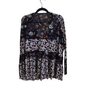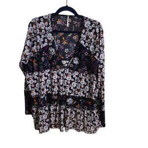 Free People Isabelle Floral Bohemian Oversized Long Sleeve Tunic Top Size XS