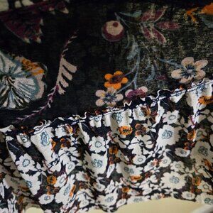 Bohemian floral tunic top with a V-neckline and tiered ruffles, ideal for a casual, stylish look. Semi Sheer. Retail $88