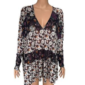 Free People Isabelle Swing Tunic Top Babydoll S Floral Mesh V-neck oversized