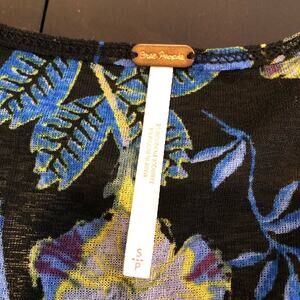 Free People Isabelle black blue yellow floral sheer v neck tunic top size Small