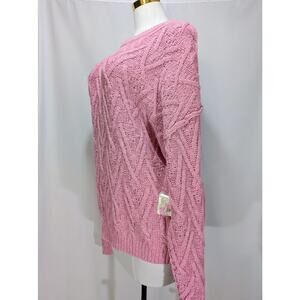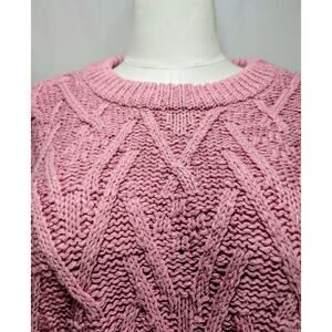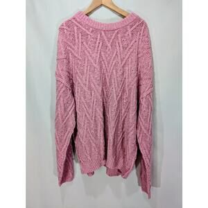 Free People Isla Cable Tunic Sweater Pink Frosting Women’s XL NWT