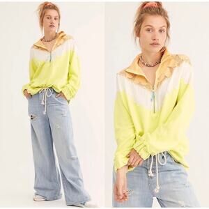 Free People Isla Crochet Quarter Zip Pullover Sweatshirt