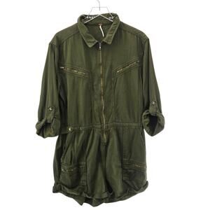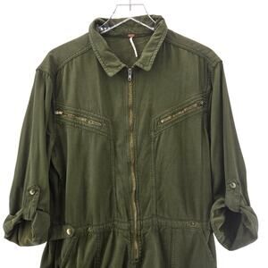 Free People Isla Jumper Womens 10 Flight Suit Aviator Olive Green Cotton Lyocel