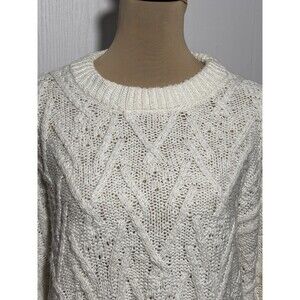 Free People Isla Sweater Women's Large Ivory White Chunky Cable Tunic Oversized