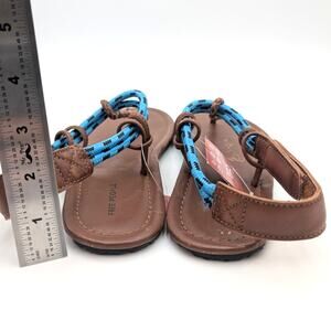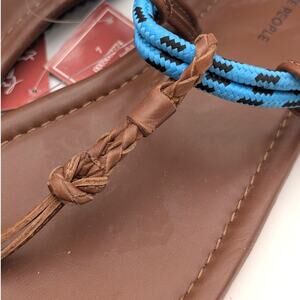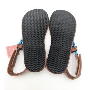 Colorful braided straps add a touch of utilitarian style to this lightweight and comfortable leather sandal. Adjustable slingback strap with hook-and-loop closure Cushioned footbed Leather and textile upper/leather lining/rubber sole.