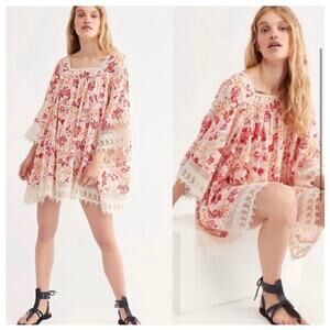 Free People It's Necessary Floral Lace Crochet Tunic Mini Dress Size M