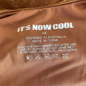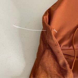 Free People Movement It’s Now Cool The One Piece In Topaz Lurex. Color is a combination of brown, orange and copper. Has shimmer/metallic threads.