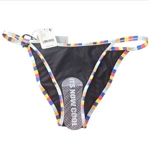 Elevate your beach style with the Tallow Duo String Cheeky Bikini Bottom from It's Now Cool. Boasting a classic solid color wash with multicolor contrast strings, this low-rise bikini bottom strikes the perfect balance between understated elegance and vibrant style. A leg-lengthening high-cut leg, thin side straps, and cheeky seat coverage complete the look.