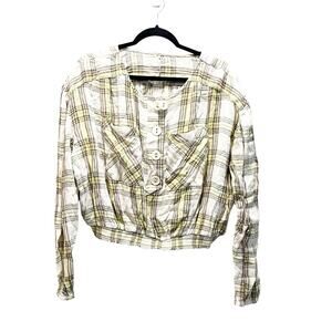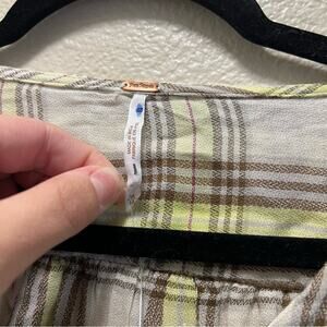 Free People It’s The Good Life Plaid Top Button Front Crop Blouse Size Medium