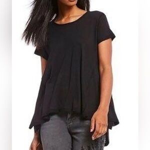 Free People It’s Yours Tee Black Asymmetrical Cap Sleeved Modal Cotton Small