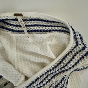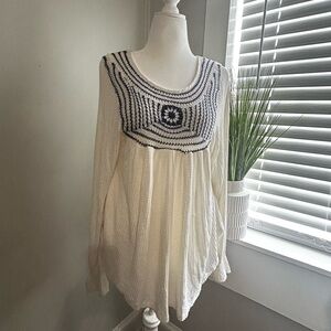 Free People Ivory Blouse with Navy Embroidery Size Medium