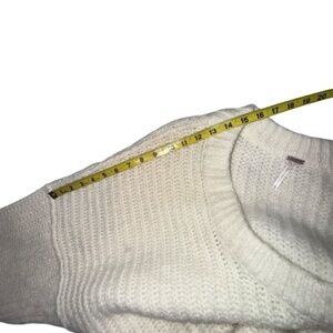 Free People Scoop Neck Cable Knit Drop Shoulder High-Low Oversized Pullover, Size XL Color: Ivory  Description: Cable knit fabrication Oversized silhouette,  Long sleeves, Drop shoulders, Side slits , Lower back hemline, Pullover, It does have a small dark spot, please see the last picture for reference, other than that it's in new condition.
