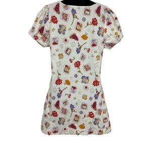 Free People Ivory Combo Mini Floral Ruch Short Sleeve Women Size Large Mini New