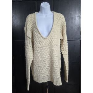 Free People Ivory Crashing Waves Oversized Open-Knit Chunky Boho Sweater M Wool