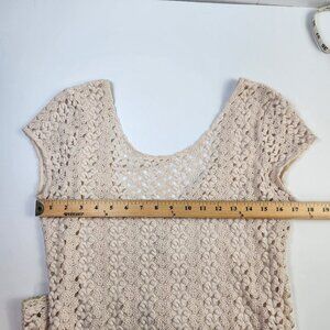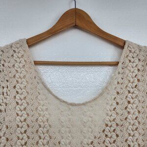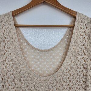 Free People Ivory Crochet Gypsy Boho Scoop Midi Sheath Dress Size Large