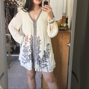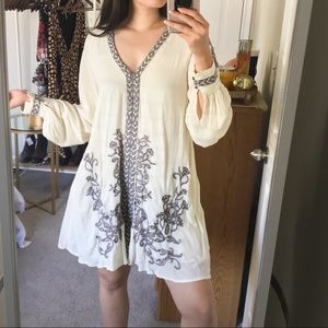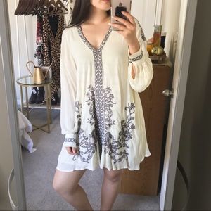 Free People Ivory Embroidered Swing Dress