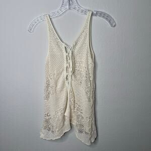Free People Ivory Open Knit Crochet Tank Top Boho Festival Beachy Sleeveless M