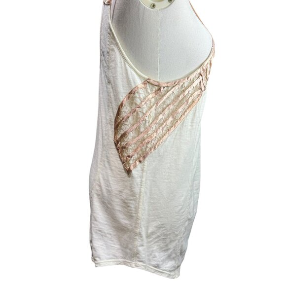 Free People Ivory Sleeveless Top with Embroidered Mesh Yoke – Boho Chic Size M