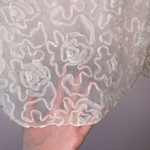 Free People ivory white embroidered sheer tank top. In excellent condition! Crew neckline. Sleeveless. Boxy fit. Embroidered floral print. Ivory white sheer color. Size large.