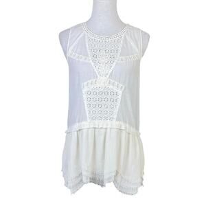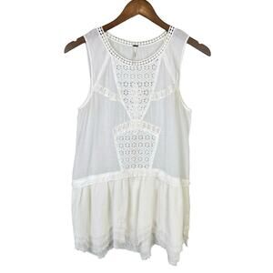 Free People Ivory White Eyelet Frayed Peplum Hem Tunic Tank Sleeveless Top