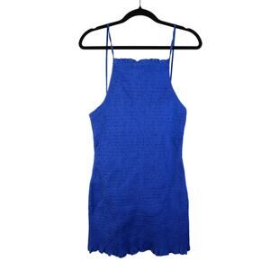 Free People Iyla Smocked Mini Blue Ruffle Ruched Bodycon Medium New