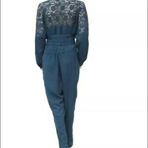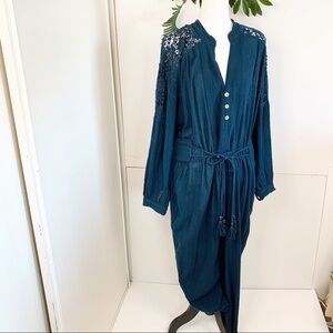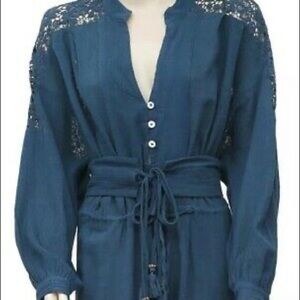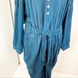 Free People Izzy Blue Turquoise Gauze Belted Jumpsuit! Size Medium