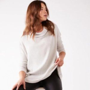 •Wide cowl neck, dropped shoulders, exposed seam detail, and split back.