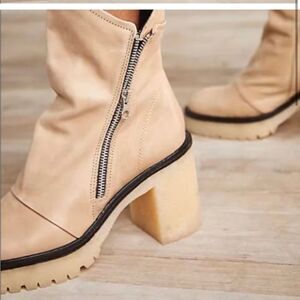 Free People Jack Zip Lug Sole Leather Boots in Camel New In Box Size 7.5 (38)