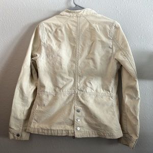 Off white Free People denim jacket with a little military style pockets. Very warm!