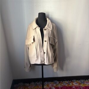 Stay stylish and warm with this elegant cream jacket. Perfect for any occasion and has deep front pockets.