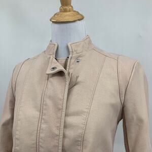 Free People Jacket Womens 0 Pink Sand Vegan Faux Leather Wool Blend Moto Cropped