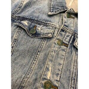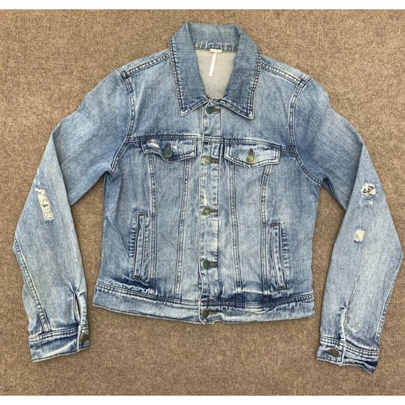 Free People Jacket Womens 6 Denim Trucker Distressed Fitted Cropped Pre-Washed