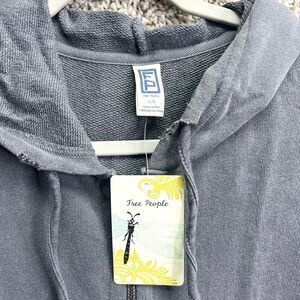 Free People Jacket Women’s Large Gray Distressed Zip Up Hooded Shirt NWT