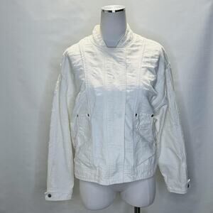 Free People Jacket Womens Large White Textured Cotton Full Zip Button Boho Casual