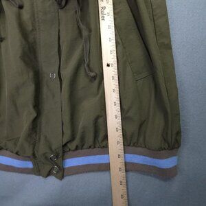 Free People Jacket Womens Small - Medium Green Drawstring High Collar Zip Snap Boho Rain Coat Lightweight