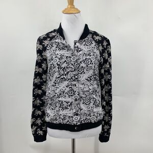 FREE PEOPLE JACKET WOMENS S SMALL FLORAL BOMBER SNAP BUTTON SATIN LINED POCKETS