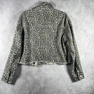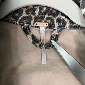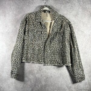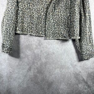 Free People Jacket Womens Small Black Brown Leopard Print Denim Cropped Raw Hem