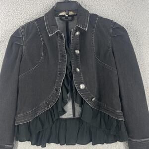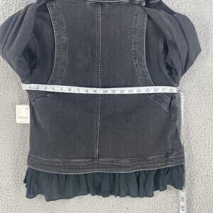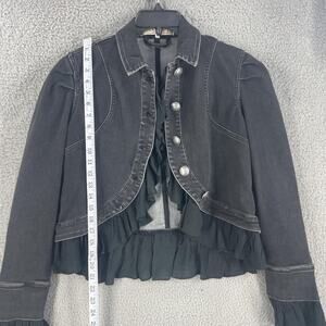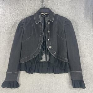 Free People Jacket Womens XS Black Ruffle Denim Boho Cropped Peplum