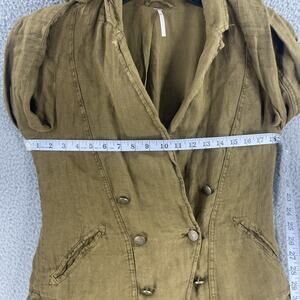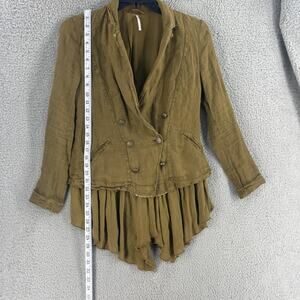 Free People Jacket Womens XS Brown Linen Ruffle Hem Double Breasted Boho Blazer