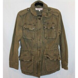 Free People Jacket Womens Sz XS Olive Green Full Zip Military Cargo Pockets