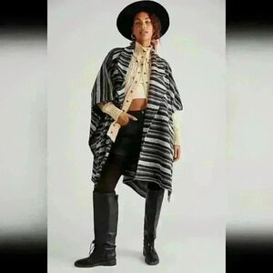 So cool in stripes, this oversized poncho is the perfect way to add some pattern to any outfit.