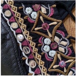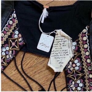 XS Free People Jade Top. Black leather crop top. Black Embroidered Mirror Tie Front Sext Tank Crop Top wowza! Boho vibes extraordinaire! Serving 70s rock n roll goddess will be cute with flare pants jeans high waisted shorts leggings over bodysuit bikini you do you boo💋