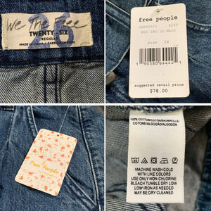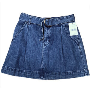 Free People Jade Denim Belted Pleat Front Skirt w/Pockets Indigo Blue SZ 26 NWT