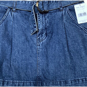 Free People Jade Denim Belted Pleat Front Skirt w/Pockets