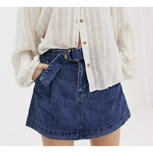 Free People, Denim Skirt, Mini Skirt, High Rise, Belt, PocketsVintage Wash