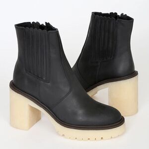Free People James Black Leather Chelsea Platform Boots Size 40 US Size 10 New