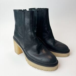 Free People James Black Leather Chelsea Platform Boots Size 40 US Size 10